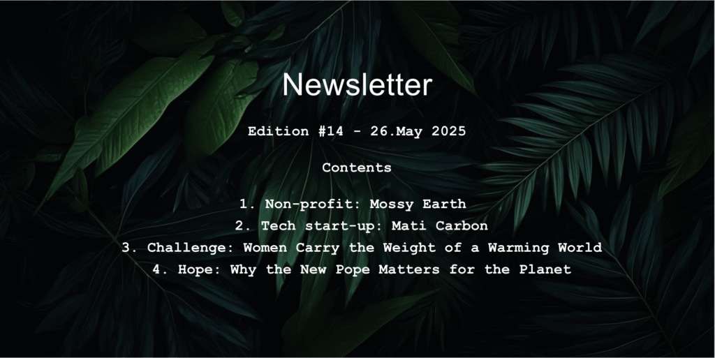 This edition explores the intersection of climate action, gender equity, and institutional influence. We spotlight Mossy Earth and Mati Carbon, two innovative initiatives reshaping carbon removal and ecological restoration. We then examine how climate change disproportionately affects women, focusing on India’s tea industry as a powerful example of global inequality. Finally, we reflect on Pope Francis’s environmental legacy and consider what the election of Pope Leo could mean for the future of faith-led climate leadership. Together, these stories highlight the diverse actors driving sustainability—and the systemic change still needed. I hope you learn something new and enjoy reading!